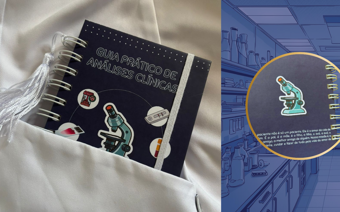 Seu fiel companheiro do laboratório! Cabe no bolso do seu jaleco e é ideal para consultas rápidas. Tenha mais segurança no estágio ou plantões.